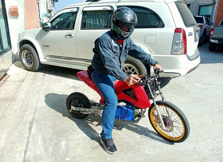 Normal motorcycle will be modified to be E-motorcycle by removing the engine and replace it with electric hub battery. Power and battery size will be calculated based on customer usage requirement such as speed at 60-80 Km/h per 50 kilometers / one charging time.